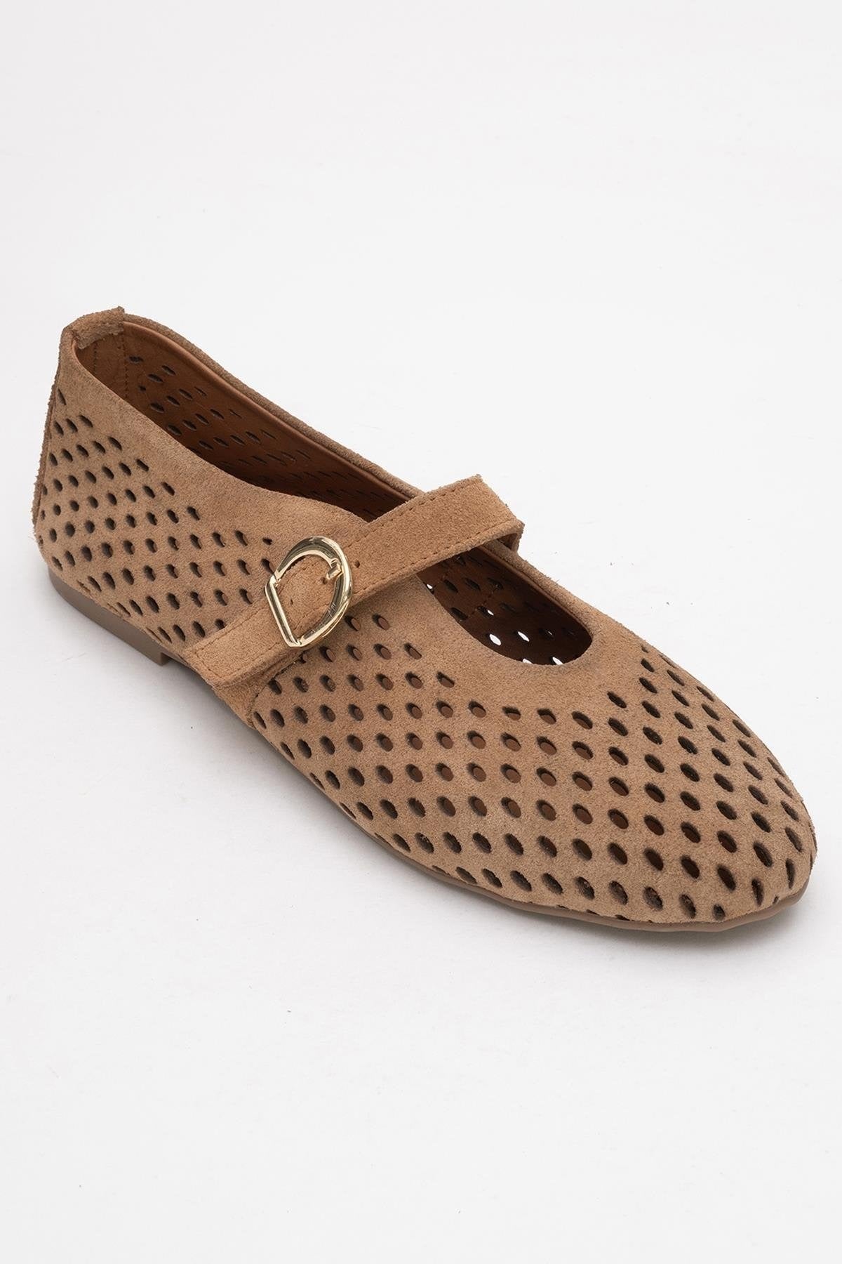 Arian Cognac Brown Suede Leather Ballet Flat (Women)