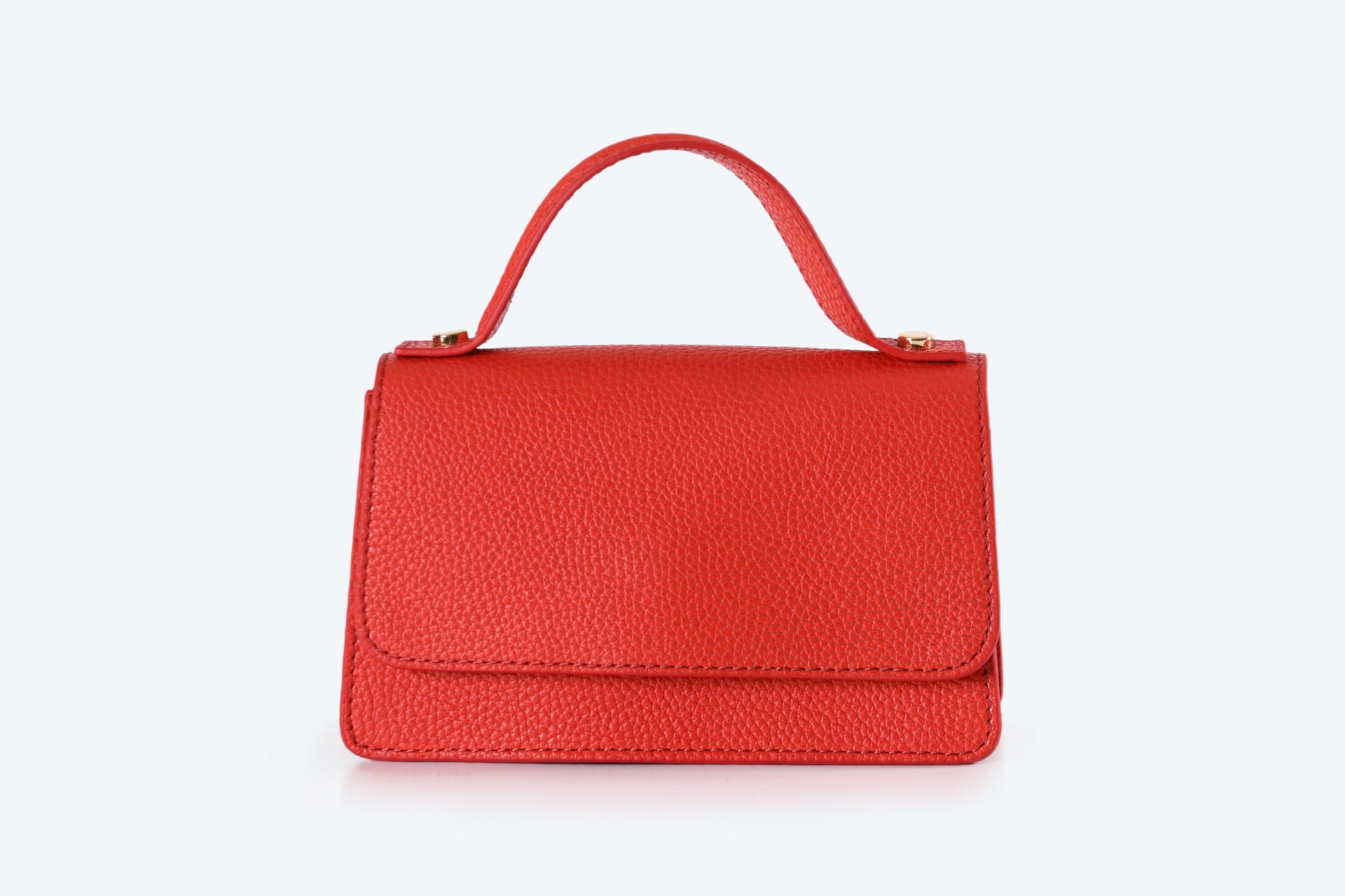 The interior is lined with soft textile fabric and offers just the right amount of space for your must-haves, while the magnetic closure ensures your belongings stay secure with ease. Its minimalist red leather exterior is enhanced by subtle gold accents, making it suitable for both casual outings and sophisticated evenings.