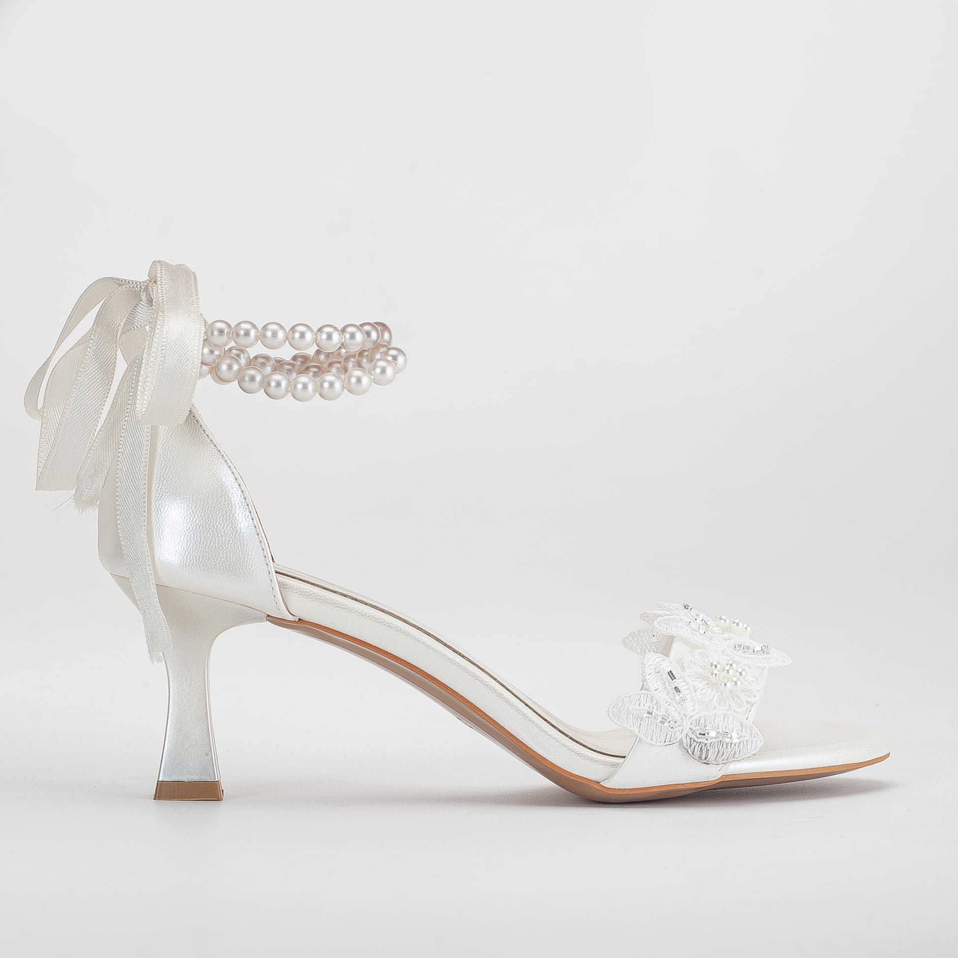Dawn - Ivory Lace Bridal Sandals with Pearls