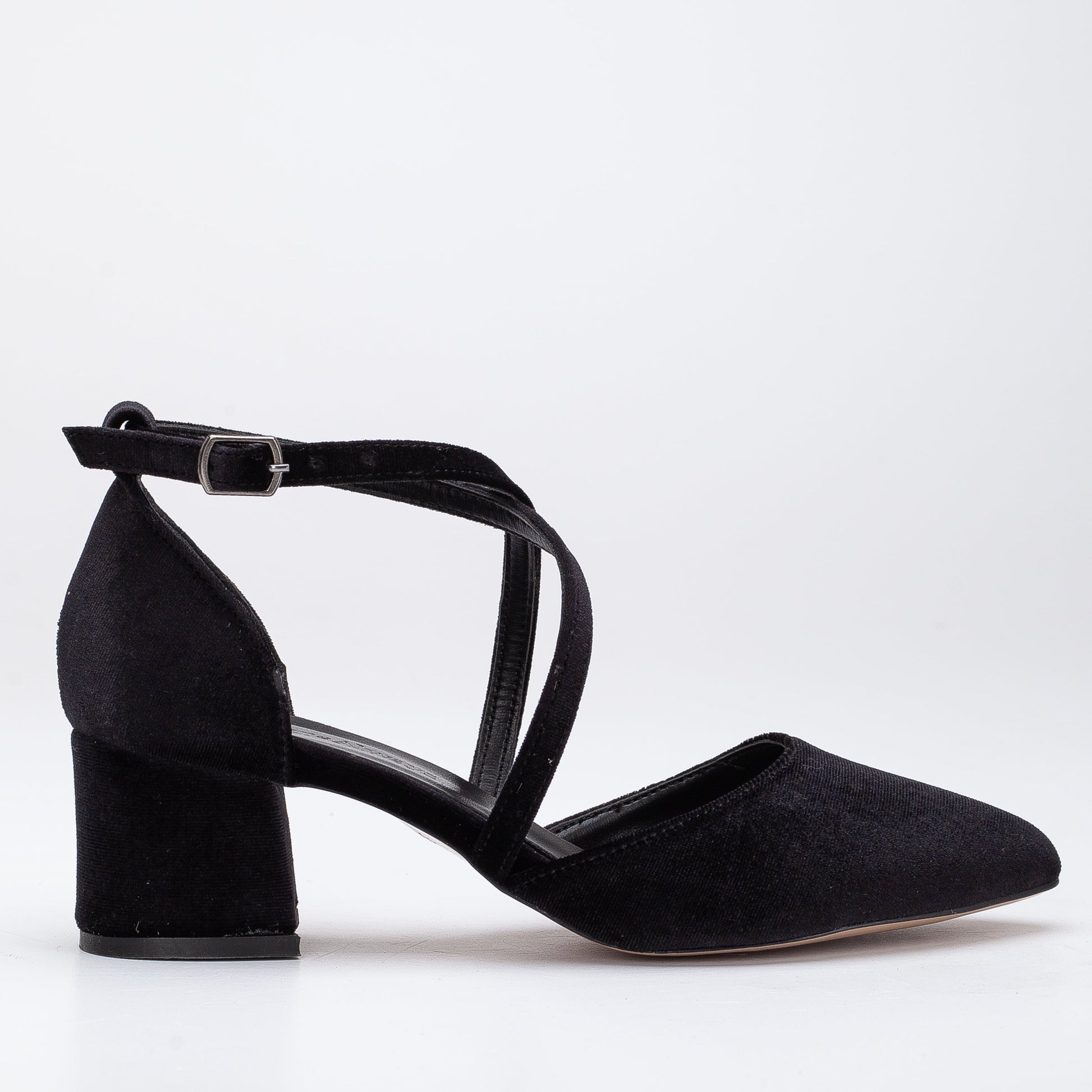 • Crafted from high-quality black velvet, these Black Cris Cross Shoes are chic and comfortable. The sleek design of the criss cross strap provides a secure fit, while the chic black velvet color adds a touch of simplicity and minimalism to any outfit.
