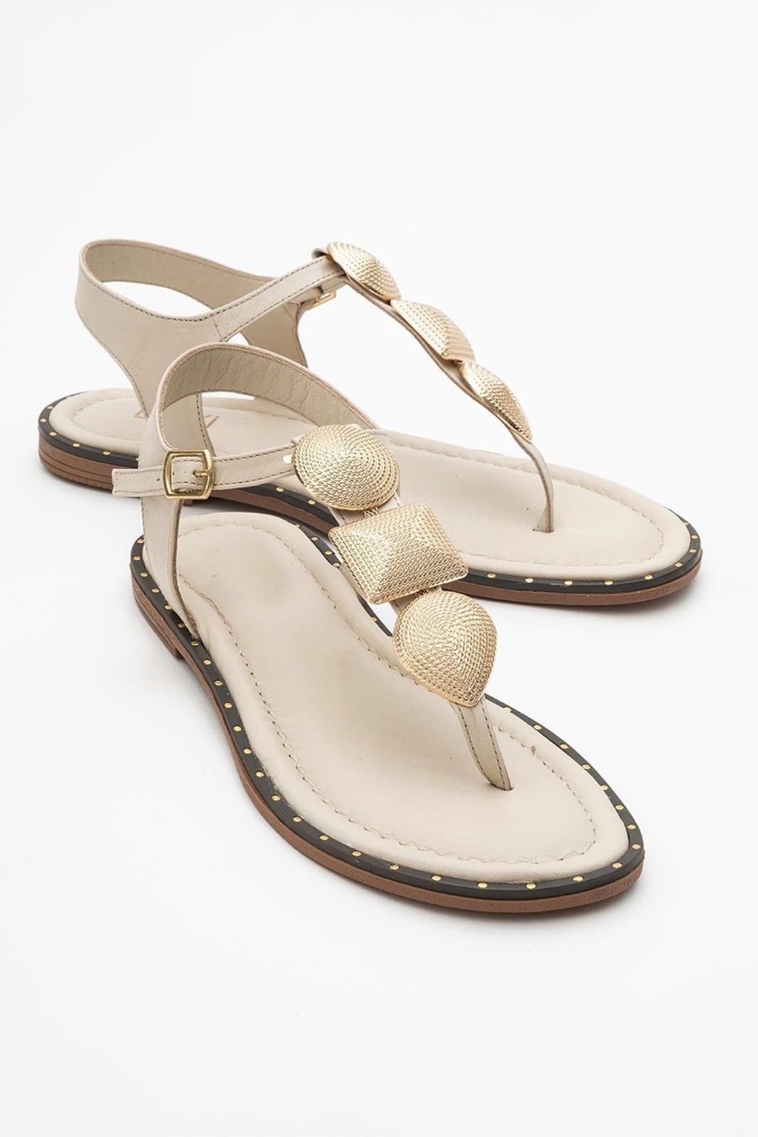 Handmade in Turkey, these flat sandals run true to size and feature a soft leather insole for breathable all-day wear. The refined thong silhouette is elevated with a striking gold buckle detail, adding a touch of shine and modern elegance to the minimalist design.