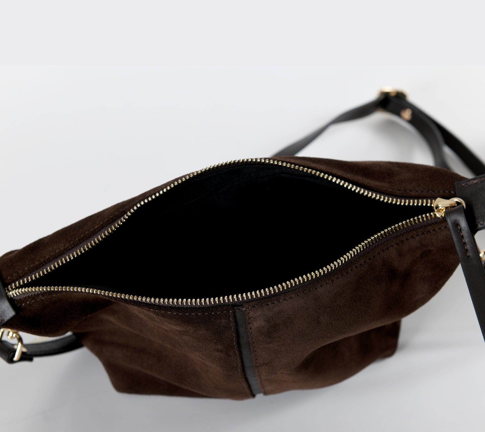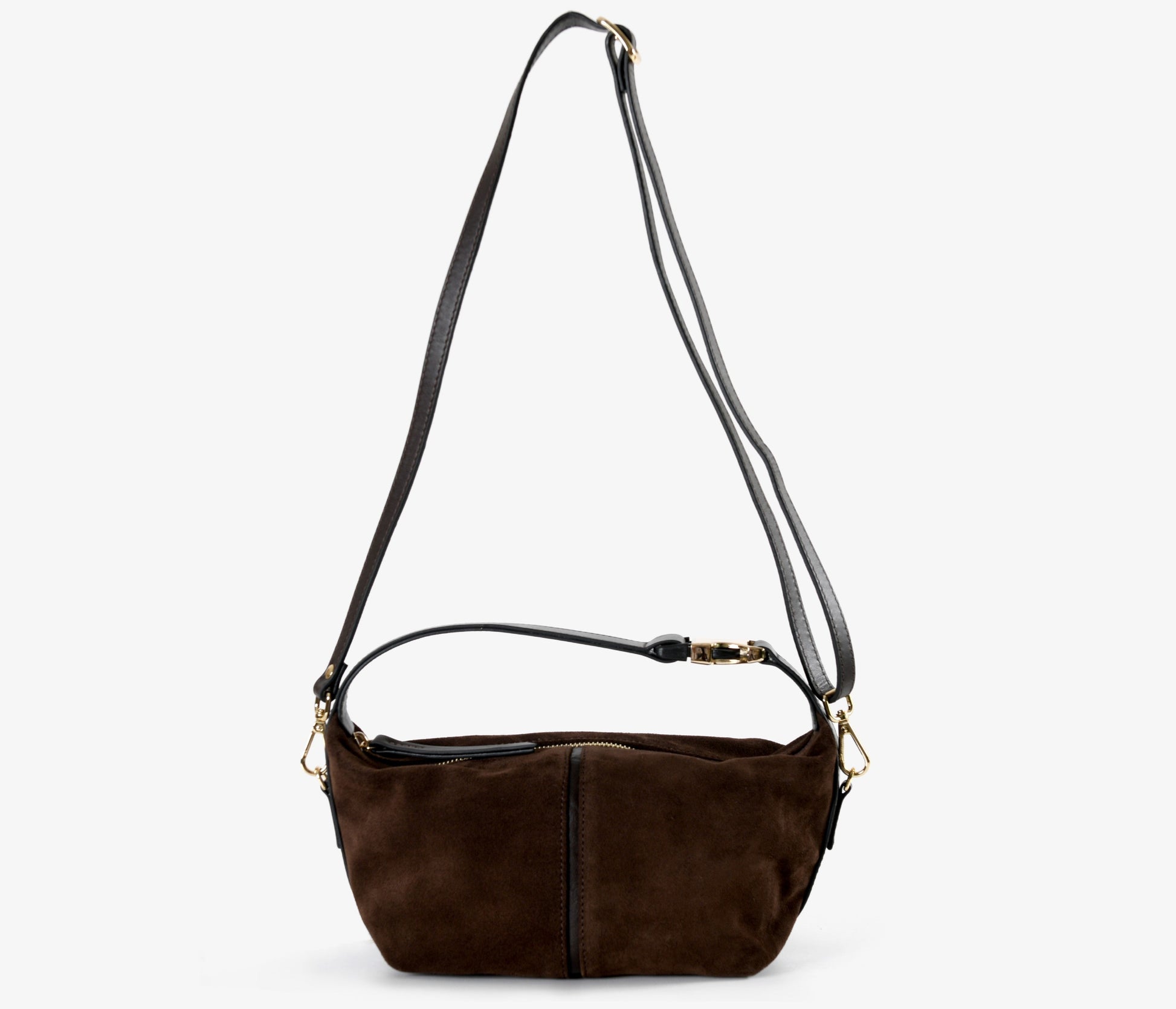 Leona - Dark Brown Suede Leather Crossbody Bag