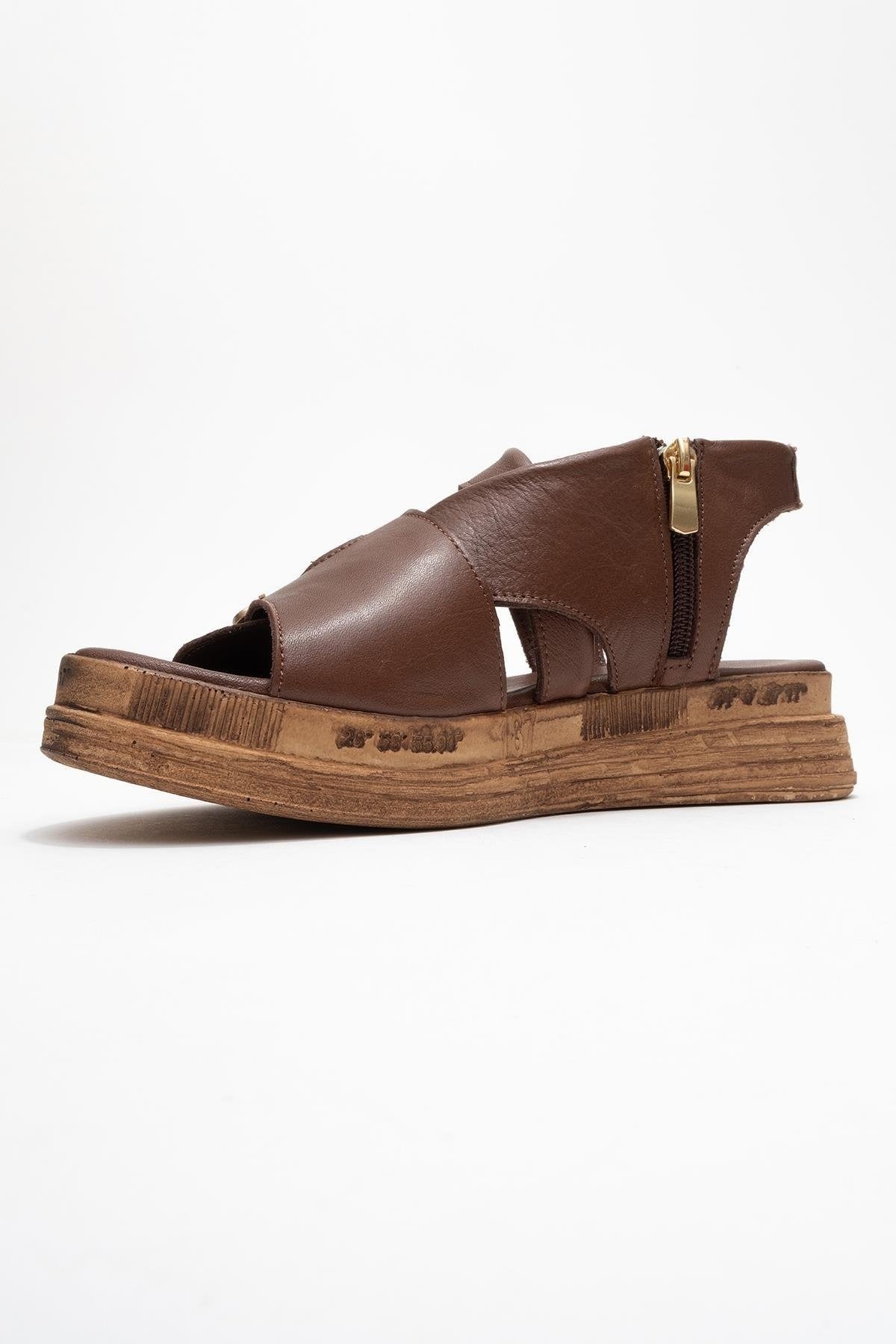 Levine Brown Leather Buckled Side-Zip Sandal (Women)