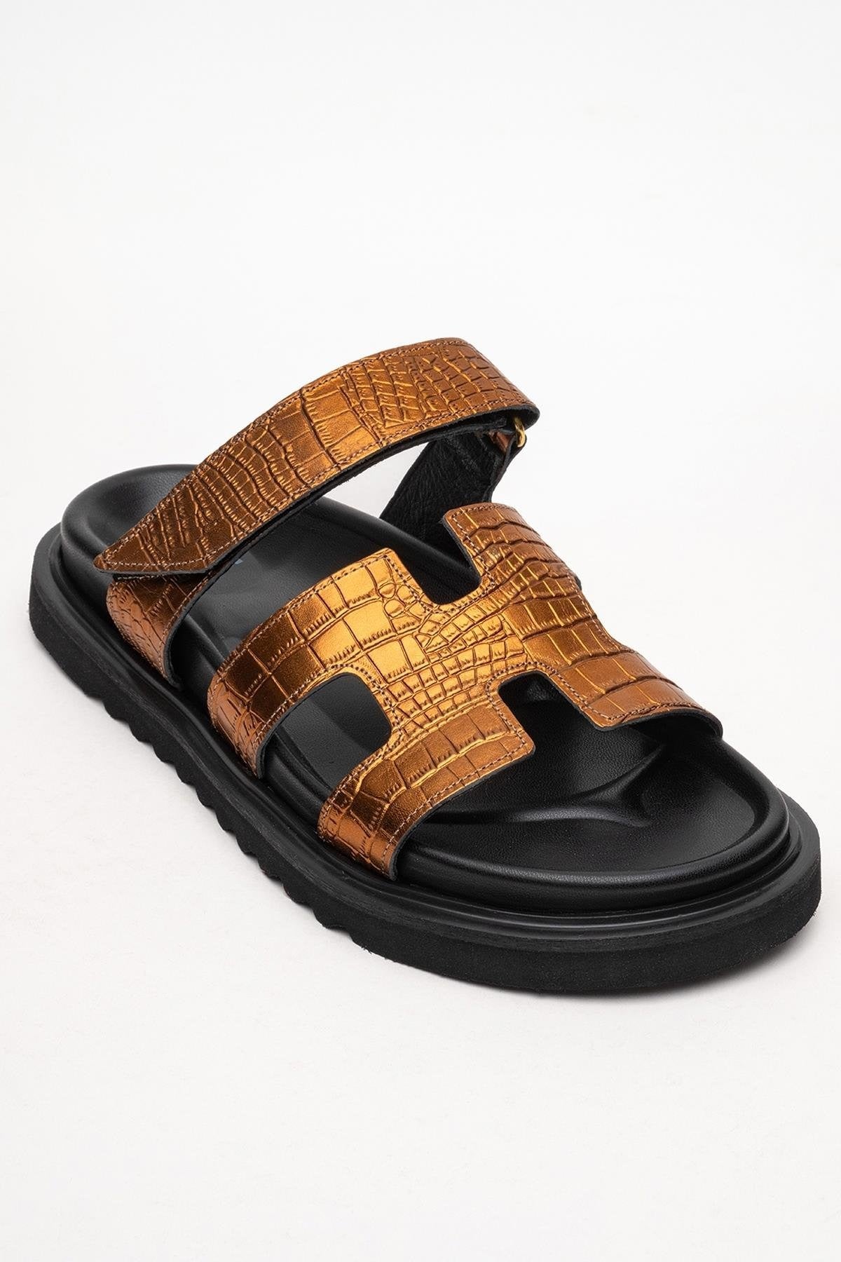Loana Bronze Leather Slide Sandal (Women)