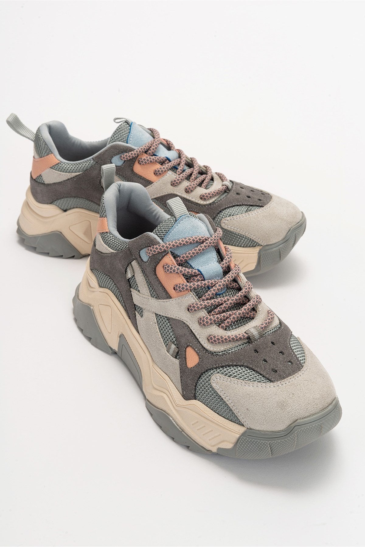 Loretta - Gray Pink Platform Sneakers