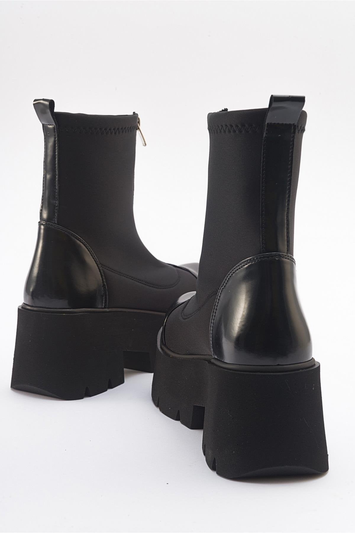 Bray Boots from Prologue Shoes by Forever & Always Shoes offer an expertly crafted balance of contemporary edge and everyday resilience. Crafted from high-quality faux leather and scuba fabric, these boots feature a streamlined silhouette with a robust lug sole and a stable 5 cm (approximately 1.97 inches) block platform heel, delivering bold elevation with comfort.