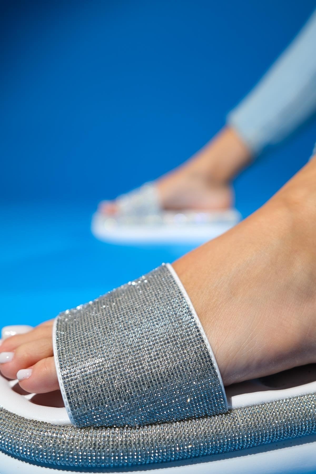 Oeste Platform Mules from Prologue Shoes by Forever & Always Shoes exude a bold silhouette balanced by elevated comfort. Crafted from high‑quality faux leather, this style features a sleek single strap enhanced with sparkling embellishments for a subtle touch of shine.