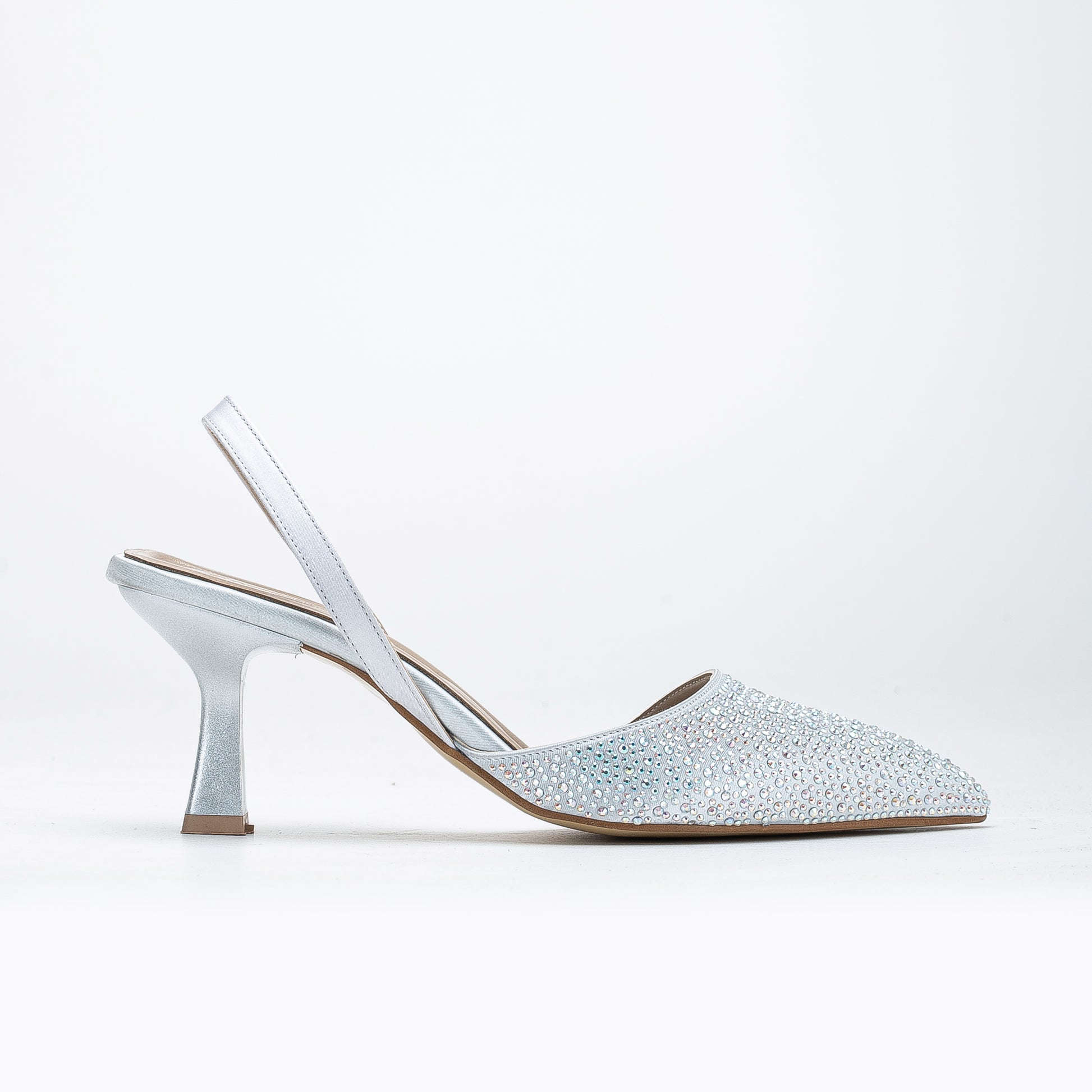 Rae - Silver Rhinestone Slingback Kitten Heels
