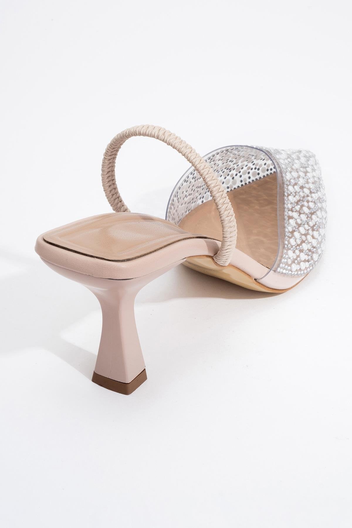 Crafted with elegance and modern sophistication, the Whena Beige Pearl-Embellished Clear Slingback Heels from Forever & Always Shoes are the perfect blend of style and comfort. Made from high-quality faux leather, these heels feature a transparent upper adorned with delicate pearl accents, creating a refined and graceful look. The adjustable slingback strap ensures a secure and comfortable fit, while the nude-tone insole blends seamlessly with your skin for a barely-there effect. Designed with a stylish 2.95-inch (7.5 cm) kitten heel, these heels provide a subtle lift while offering stability for extended wear. Whether you're attending a wedding, a formal event, or adding a touch of luxury to your everyday outfits, these pearl-detailed slingback heels will make you stand out with effortless charm.
