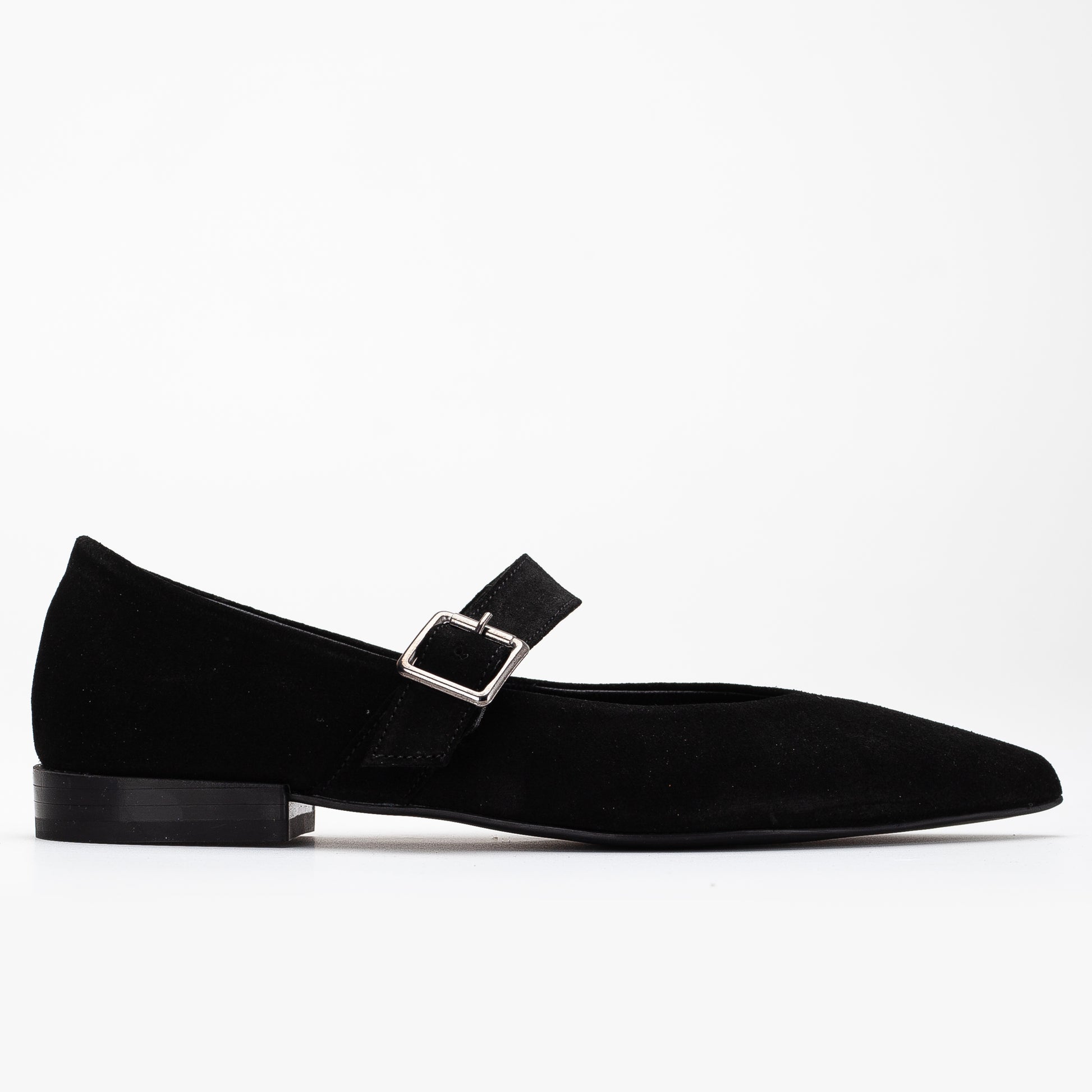 Willow - Black Suede Leather Mary Jane Flats (Women)